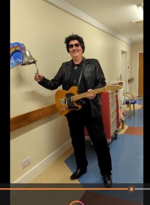 Mike as Roy Orbison ringing the bell after his last chemotherapy session to cheer everyone and himself up.